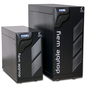 O Nobreak/UPS DWTM8 (8kVA) possui alimentação trifásica, saída monofásica e é dupla conversão.